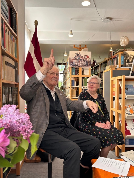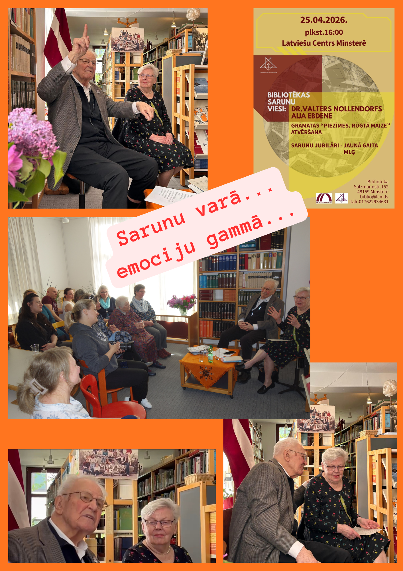 Sarunu telpa savu stāstu sāka ar svētkiem - tikšanos, jaunas grāmatas atvēršanu un tematiskām sarunām ar mums mīļajiem viesiem, Dr. Valteru Nollendorfu un Aiju Ebdeni.