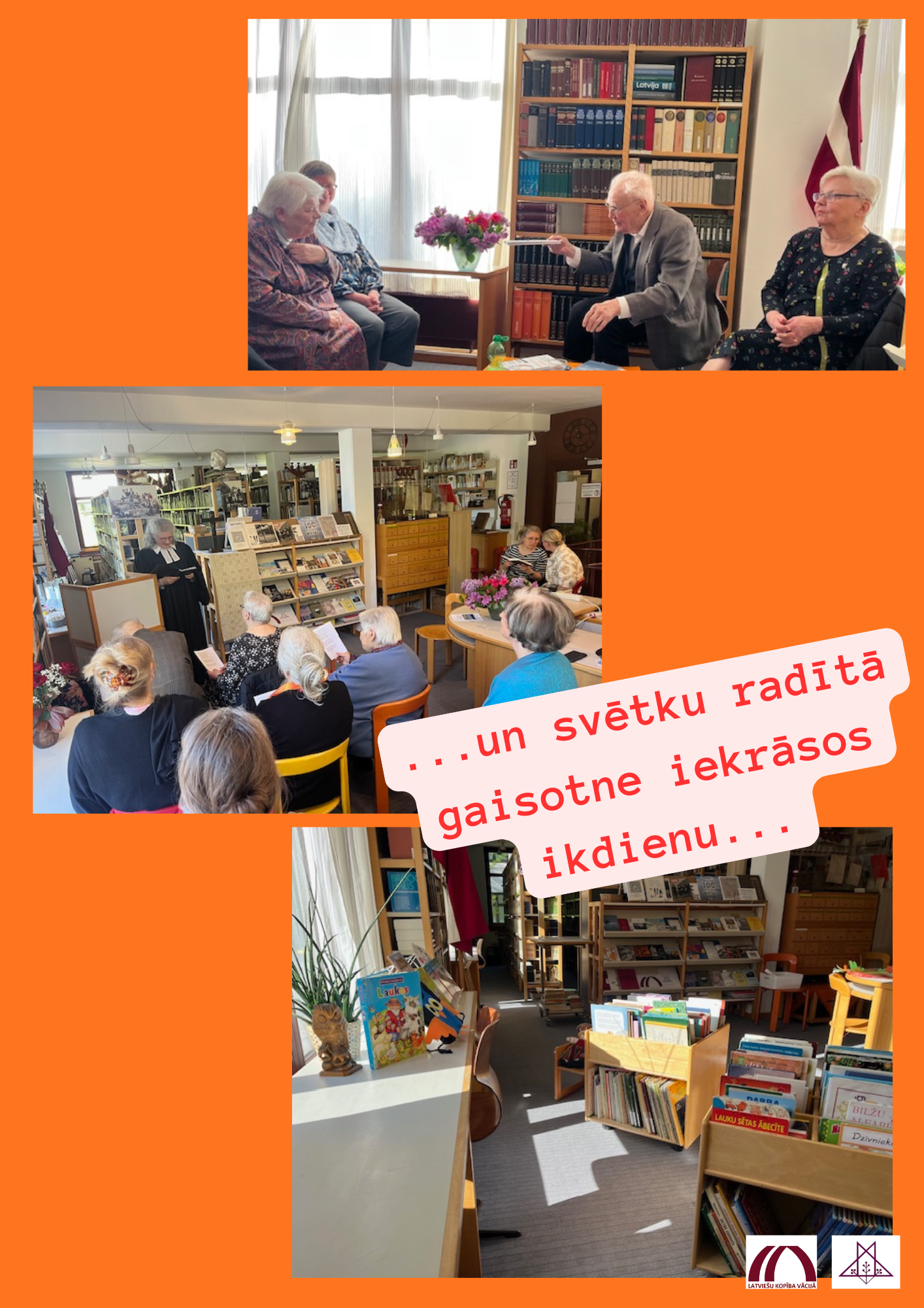 Saules gaišums piepildīja telpu un klausītājus, un tās klātbūtne bija jūtama gan runātāju vārdos, gan klausītājos - gan tiešā, gan pārnestā nozīmē. Sarunas turpinājās arī pēc pasākuma - tās nerimās, un pozitīvais noskaņojums, sirsnīgās tikšanās iespēja, bibliotēkas gaisotne rosināja vēlmi šo vietu piedzīvot arī citos notikumos, tostarp gaidāmajā svētdienas dievkalpojumā. Tā mūsu sarunu telpa laipni turpina uzņemt cilvēkus un dažādus notikumus, kļūstot par vietu, kur sarunas turpina dzīvot.