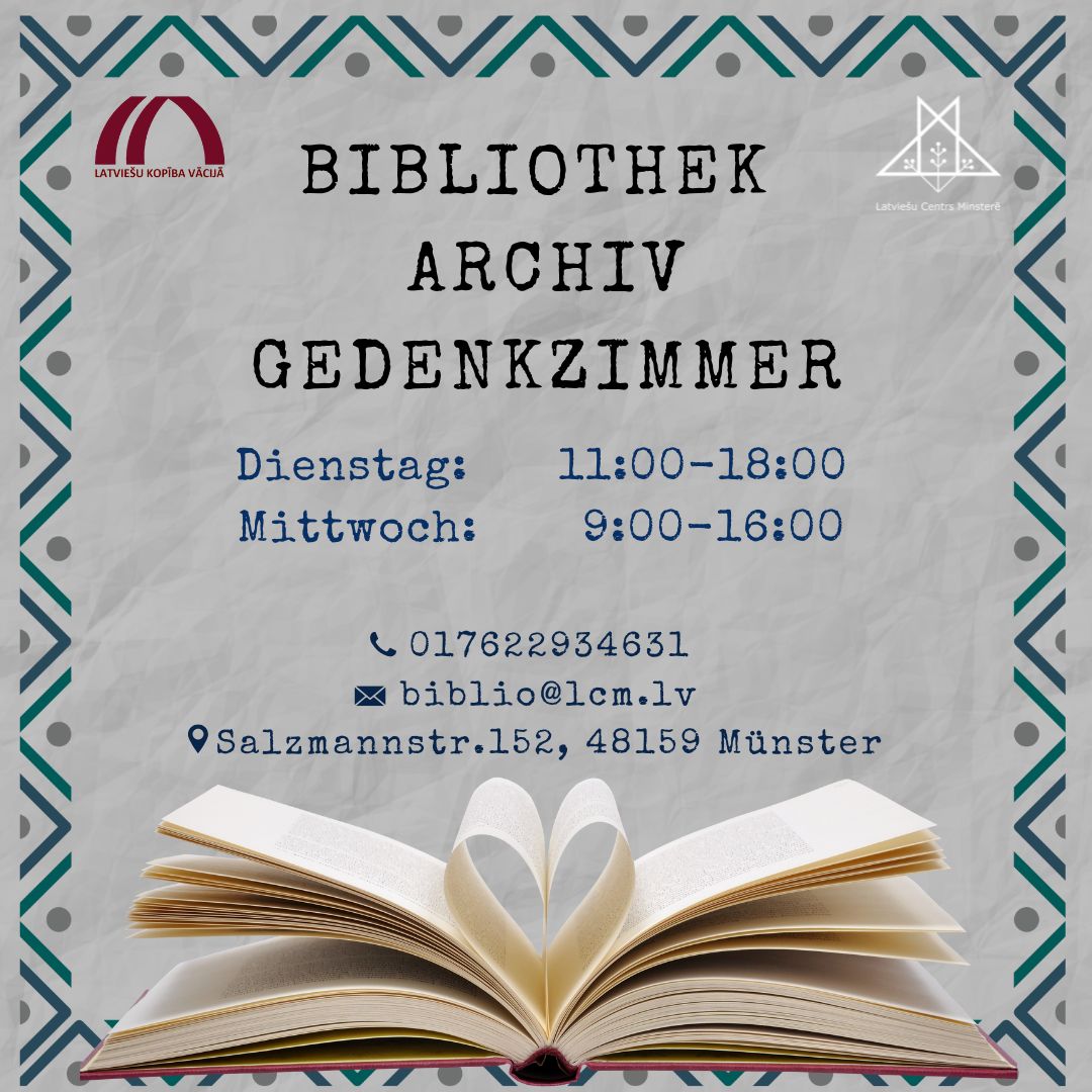 Die Öffnungszeiten der Bibliothek, Gedenkzimmer, Archiv